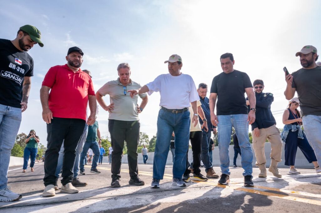 Um quilômetro à frente, Eduardo Braga e a comitiva também visitaram as obras de construção da nova ponte sobre o Rio Autaz Mirim, que seguem em ritmo acelerado. A estrutura, no Km 24,60, no perímetro de Borba, também desabou em 2022. A expectativa é entrega-la concluída em dezembro.